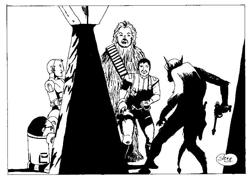 - Alarme ! ", cria Luke, précédant de peu un tonnerre de coups de laser. " Notre seule chance est de sortir par le vide-ordures.