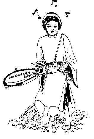 " Permettez-moi de vous rappeler, Princesse Léolo, que le maniement de la tronçonneuse-laser, n'est pas de votre rang.